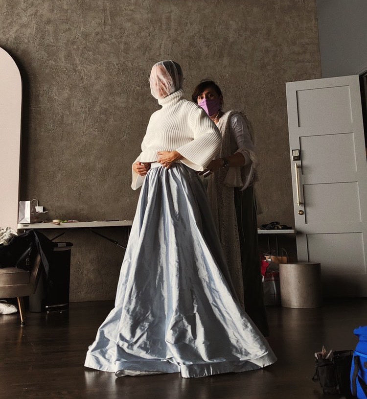 The Oveil makeup cover is a must-have on set for wardrobe stylists, makeup artists, and hair stylists. It protects clothes, hair, and makeup, ensuring a flawless look during wardrobe changes and preventing mishaps right before shooting.